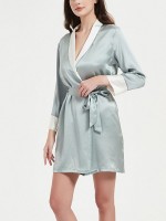 Blue Color Block Tie Waist Silk Robe