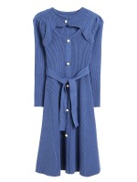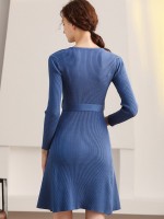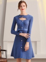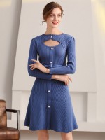 Blue Cutout A-line Knitted Dress