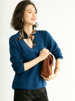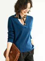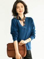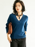 Blue Deep V Neck Knitted Top