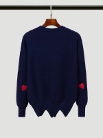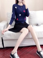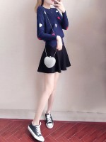 Blue Embroidery Sweater with heart pattern +Black Skirt