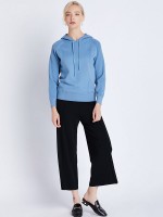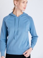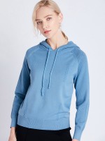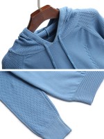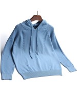 Blue Fine Knit Long Sleeves Hoodies