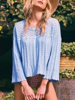 Blue Hollow Out Flared Sleeves Side Split Knit Top