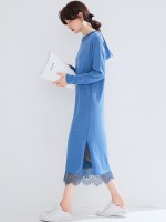 Blue Hooded Knitted Maxi Dress