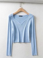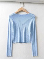 Blue Plunge V-neck Long Sleeve Cropped Tops