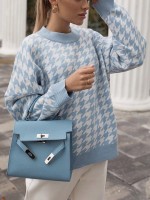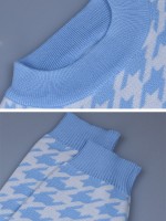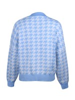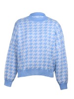 Blue Retro Houndstooth Pattern Knit Sweaters