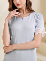 Blue Round Neck Lace Trimmed Sleepdress