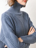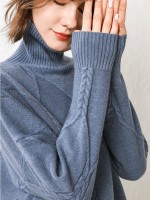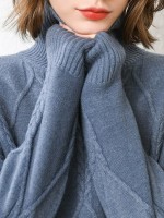 Blue Split Elements Oversize Turtleneck Knit Sweaters