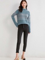 Blue Twist Semi Turtleneck Long Sleeve Sweater