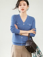 Blue V Neck Knitted Top with Button Decoration