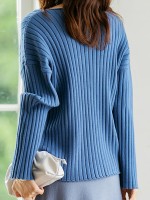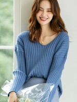 Blue V-neck Ribbed Style Sweater