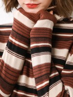 Brown Funnel Neck Stripes Design Knit Sweaters