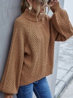 Brown Lantern Sleeves Heavy Knitted Sweaters