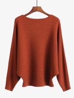 Brown Loose Fit Knit Sweaters With Cape Sleeves