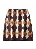 Brown Retro A-line Knit Skirts With Geometry Patterns