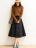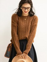 Brown Retro Twist Crew Neck Knit Sweaters