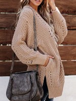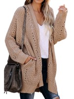 Brown Side Split Oversize Cardigans with Pockets