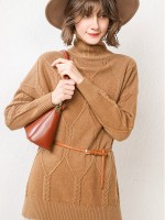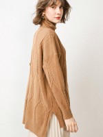 Brown Split Elements Oversize Turtleneck Knit Sweaters