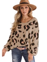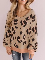 Brown V-neck Leopard Pattern Oversize Knit Sweaters