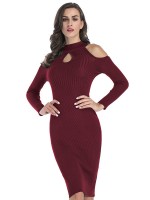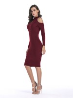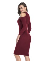Burgundy Cutout Cold Shoulder Bodycon Dress