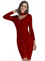 Burgundy Cutout Neckline Bodycon Dress with Rivet Detail