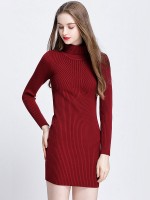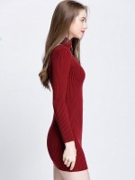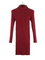 Burgundy Roll Neck Ribbed Style Knit Mini Dress