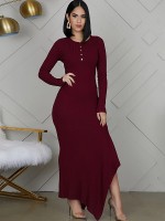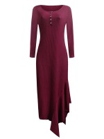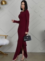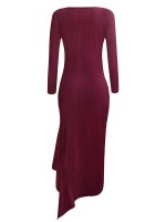 Burgundy Round Neck Asymmetrical Maxi Dress
