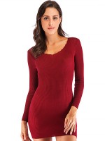 Burgundy V Neck Knitted Mini Dress