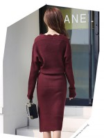 Burgundy Wrap Style Midi Dress with Wave Hem Collar