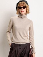 Camel Funnel Neck Solid Color Knitted Sweaters