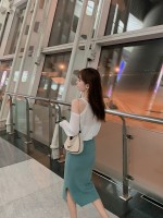 Celadon Fine Knitted High-waist Maxi Knit Skirts