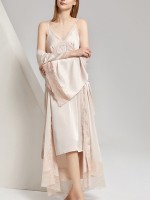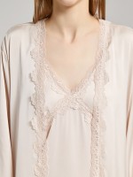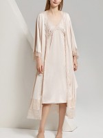 Champagne Satin Nightdress and Robe Set with Lace Trim