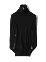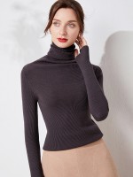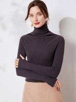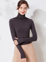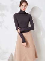 Dark Brown High Neck Soft Long Sleeve Thick Knit Sweater