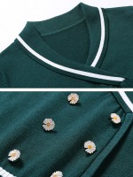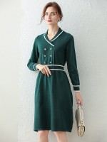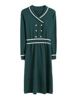 Dark Green Shawl Collar Double Breasted Knitted Dress