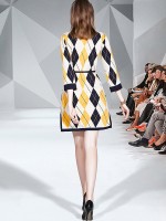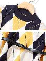 Diamond Pattern Knitted Midi Dress in Multicolor