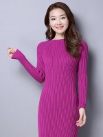 Fuchsia Stand Collar Ribbed Knitted Midi Dress