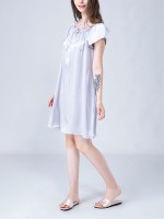 Gray Flower Embroidered Tie Collar Silk Nightdress
