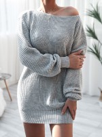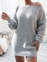 Gray Oversize Long-sleeved Casual Loose Knit Sweater