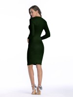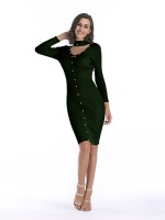 Green Cutout Neckline Bodycon Dress with Rivet Detail