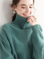 Process: Long sleeves, Turtleneck, Loose fit, Diamond lattice pattern