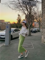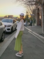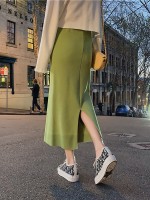 Green Fine Knitted High-waist Maxi Knit Skirts