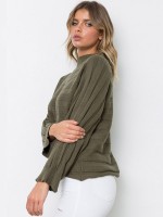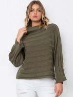 Green Half High Collar Bat Sleeve Knitted Sweater