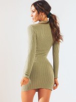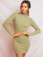 Green High Neck Knitted Bodycon Mini Dress