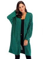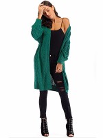 Green Hollow-carved Design Lantern Sleeve Knit Cardigan