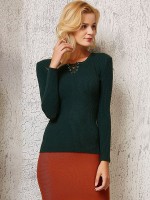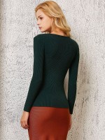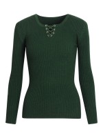 Green Lace Up Round Neck Long Sleeve Knitted Sweater