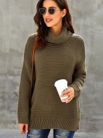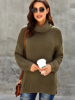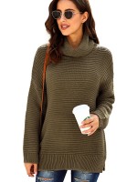 Green Long Sleeve Casual Ribbed Knit Sweater