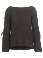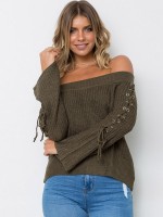 Green Long Sleeve Off The Shoulder Bandage Knitted Sweater