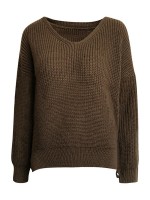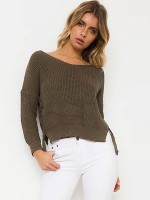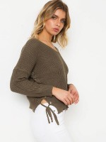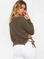 Green Long Sleeve V-neck Side Slit Bandage Wweater