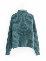 Green Loose Long Sleeve High Neck Knitted Sweater