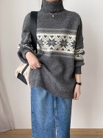 Green Loose Turtleneck Sweater with Ribbed Trims