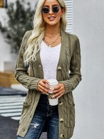 Green Oversize Boyfriend Cardigans with Button Front